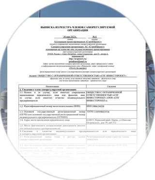 Выписка из реестра членов саморегулируемой организации (проектирование)